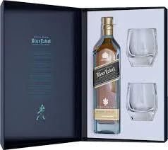Johnnie Walker Blue Label Scotch Whisky W/2 Glasses